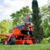 The ARROW E 52R is built around a stand-on format that gives operators quicker reactions, better visibility and reduced fatigue during stop–start work. The shorter wheelbase and upright stance make it far more agile than a sit-on zero-turn, which is why commercial crews use stand-ons for high-traffic sites, dense tree lines and tricky landscaped areas.