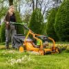 The chassis matches the petrol 531 series. It uses a steel frame, shock-absorbing front axle and a separate blade bearing to protect the motor. It’s built for daily contractor use, not domestic work.