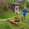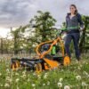 The AS 62 E-Allmäher sits in the middle of the Allmäher line-up: wider and stronger than the smaller AS 21, but lighter and more agile than the more aggressive AS 63. It’s designed for regular control of tall grass up to 90 cm on level or slightly uneven ground. This makes it a sensible choice for orchard strips, paddock edges, meadow sections and larger gardens that don’t justify a ride-on mower but still need more strength than a standard rotary can offer.