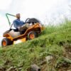 The E-Sherpa delivers its best work on level ground and moderate slopes. The deck and drive system handle long, uneven vegetation well, helped by the diff-lock when traction is limited.
