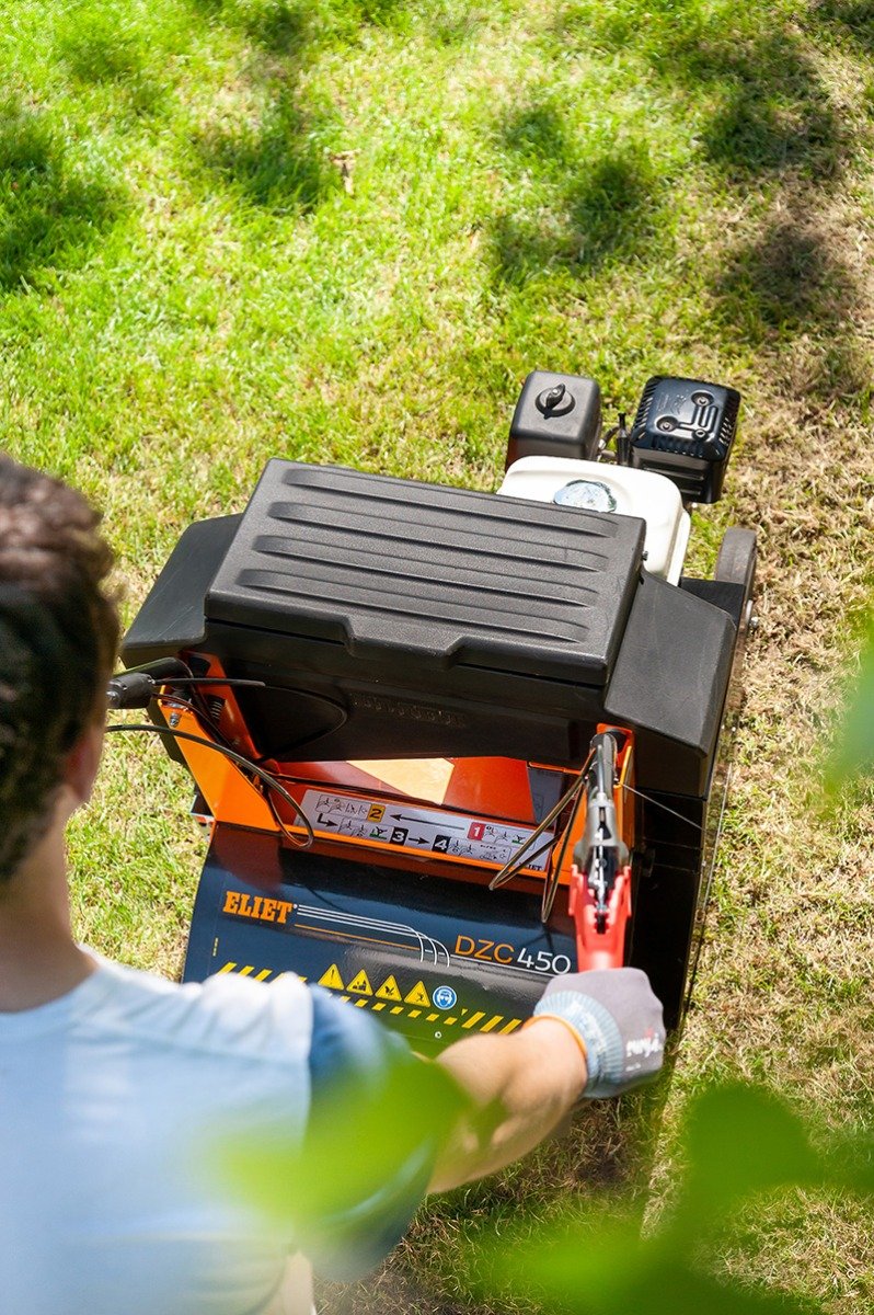 Overseeding is a very efficient method for treating lawns. Work can begin after clearing up following an intensive aeration process. The DZC 450 is very easy to operate. Although the overseeder has a working width of 450 mm, it remains very compact in size and easy to operate thanks to its powered roller. All operating controls are mounted on the handlebars, such as blade engagement, drive controls, seed distribution switches, lowering to working depth etc.