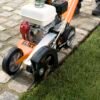 The blade drive automatically engages as soon as the depth control is selected. You can use an ergonomically located lever on the handlebar to adjust the blade depth to a number of positions. The wide handlebar mounted dead man’s handle is a passive protection device that prevents you from accidentally placing your hands near to the blade. The soft foam rubber covering the handles aids operator comfort while a vibration free handle makes it easy to work longer hours.