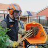 The maximum throughput of the Vector 4S is set for branch thicknesses of 80 mm. At 156 mm, the diameter of the feed roller is sufficiently large for this. With its sharp claws, the feed roller has a firm grip on branches and also climbs effortlessly on large volumes of bulk pruning waste. The feed speed is sized so that the engine rarely runs into trouble and the operator does not have to intervene often.