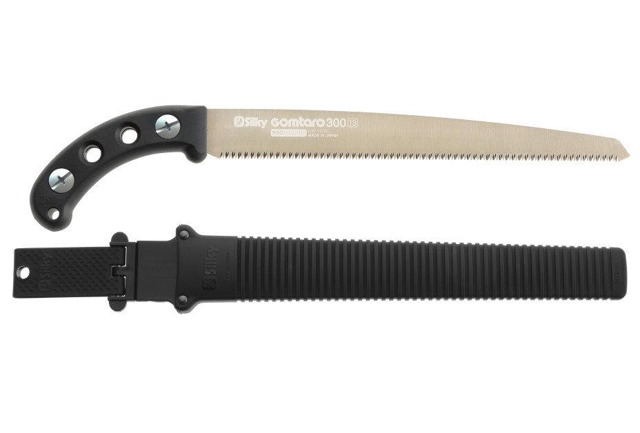 All saws from the Gomtaro series come with a lightweight, polypropylene scabbard with detachable belt holder. The scabbard is incorporated with two rollers to prevent the sharp teeth damaging the case. The bottom part is equipped with a hole that drains moist and saw dust.