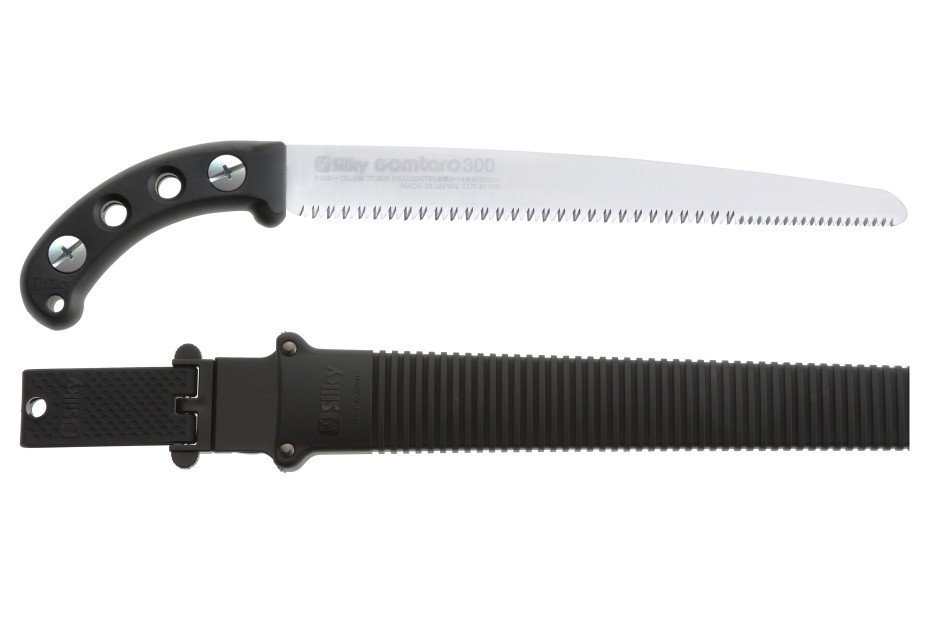 The rubber casted handle feels comfortable and absorbs vibrations. You will notice that your lower arm and saw are perfectly balanced. The scabbard is designed in such a way so that the saw cannot fall out of it, but can still be pulled with just one hand when needed. With the available leg straps you can strap the Gomtaro Pro-Sentei to your lower leg to always have the saw at arm’s length.